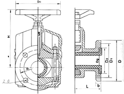 本閥門由閥體、橡膠管套、大小閥桿、壓板、拉桿、托架、手輪等零件組成。