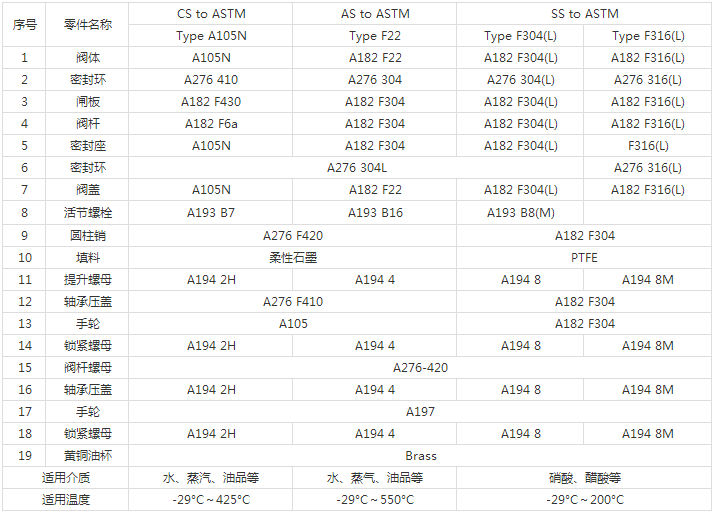 ※注意:客戶需求的其他材質也可采用。密封面材料配對由客戶指定內件代號決定。