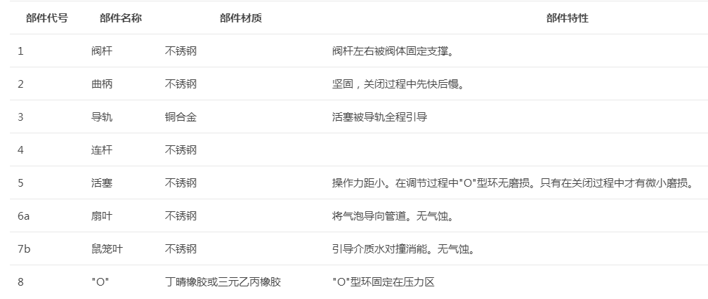 5、選材精良:閥門的關(guān)鍵部位如閥座、擋塊、導(dǎo)軌等部件均采用特殊的不鋼筋材料制作,此材料耐磨、耐氣蝕,硬度為普通不鋼筋的三倍。